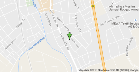 200m in Rodgau an Ampelkreuzung rechts nach Jügesheim auf die Dudenhöfer Straße.Dann erste Straße abbiegen in die Haingrabenstraße. Gleich die erste wieder rechts ist die Frühlingsaustraße.