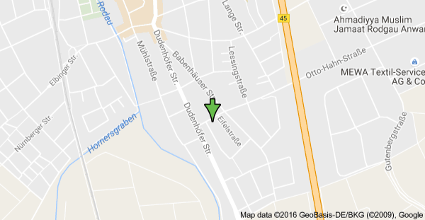 Von der S-Bahnhaltestelle Rodgau-Jügesheim zu Fuß: Aus Richtung Frankfurt/Offenbach kommend muss die Seite gewechselt werden. D.h. durch die Unterführung durch und dann rechts die Eisenbahnstraße entlang (macht nach ca. 400m einen starken Linksbogen) bis zur Dudenhöfer Straße. Diese dann rechts einbiegen (an Ampel) und entlang laufen bis zur Haingrabenstraße. Diese nach links eingehen. Gleich die erste wieder rechts ist die Frühlingsaustraße. Hausnummer 2 ist das Eckhaus Haingrabenstraße/Frühlingsaustraße.